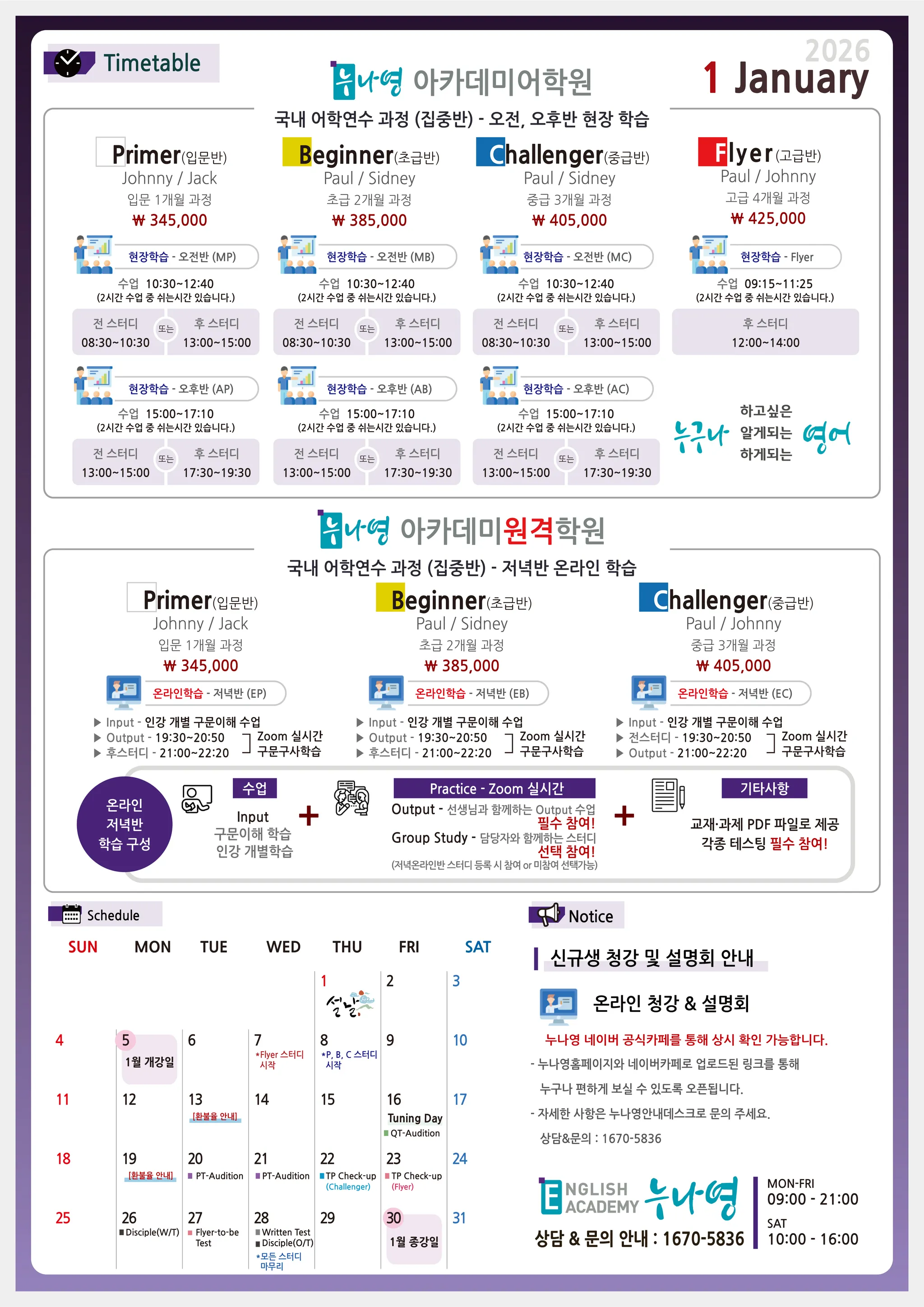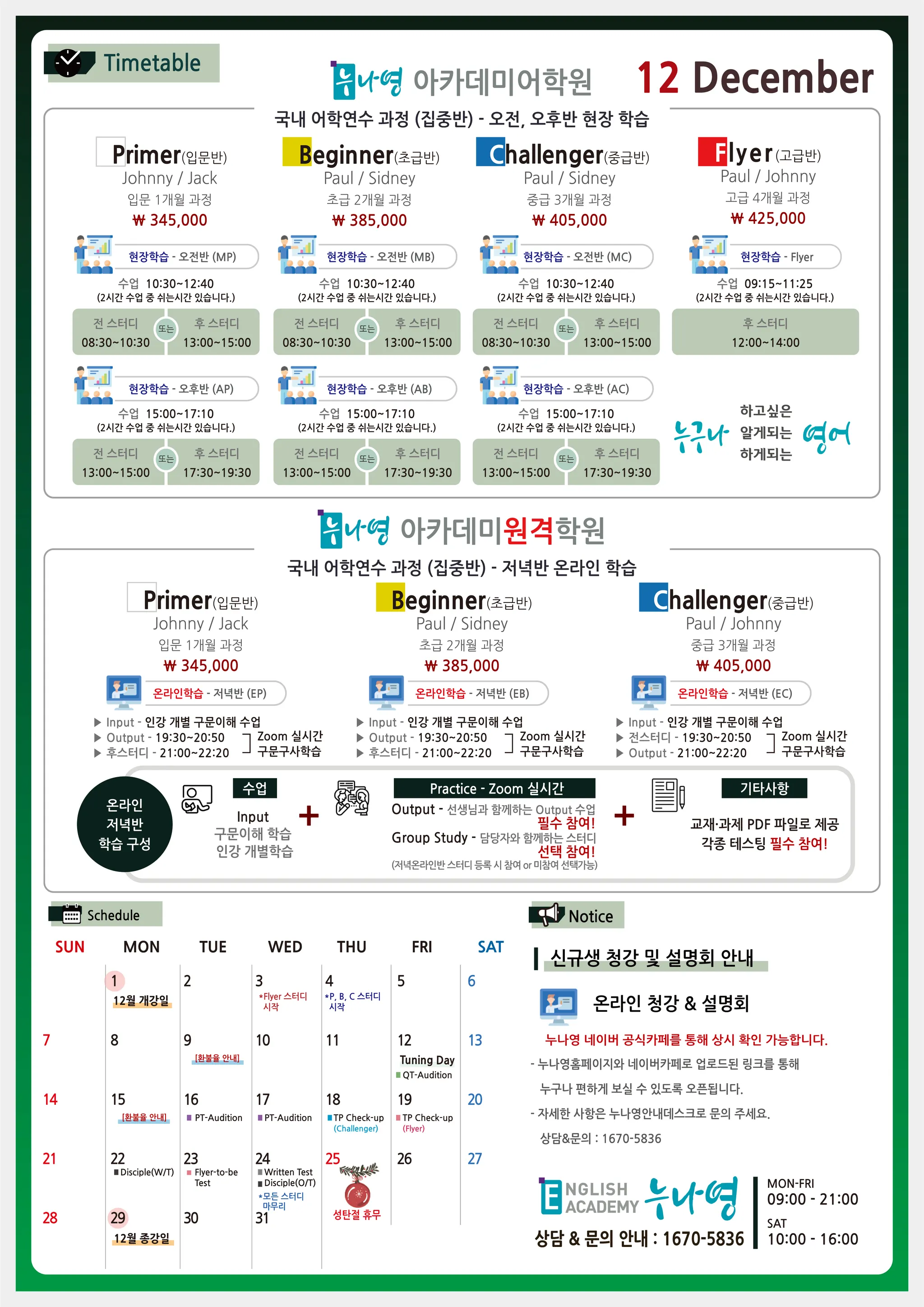 Evening Primer~Challenger 온라인반에 한하여 정규반 개월수(신규생 포함)에 상관없이 스터디 참여를 선택할 수 있도록 합니다. 다만, 스터디 참여 희망시, 반드시 등록시 사전에 스터디참여 배정 요청을 미리 신청하셔야 하고 중간에 스터디 미참여로 변경은 어렵습니다. 이점 유의해주세요!
