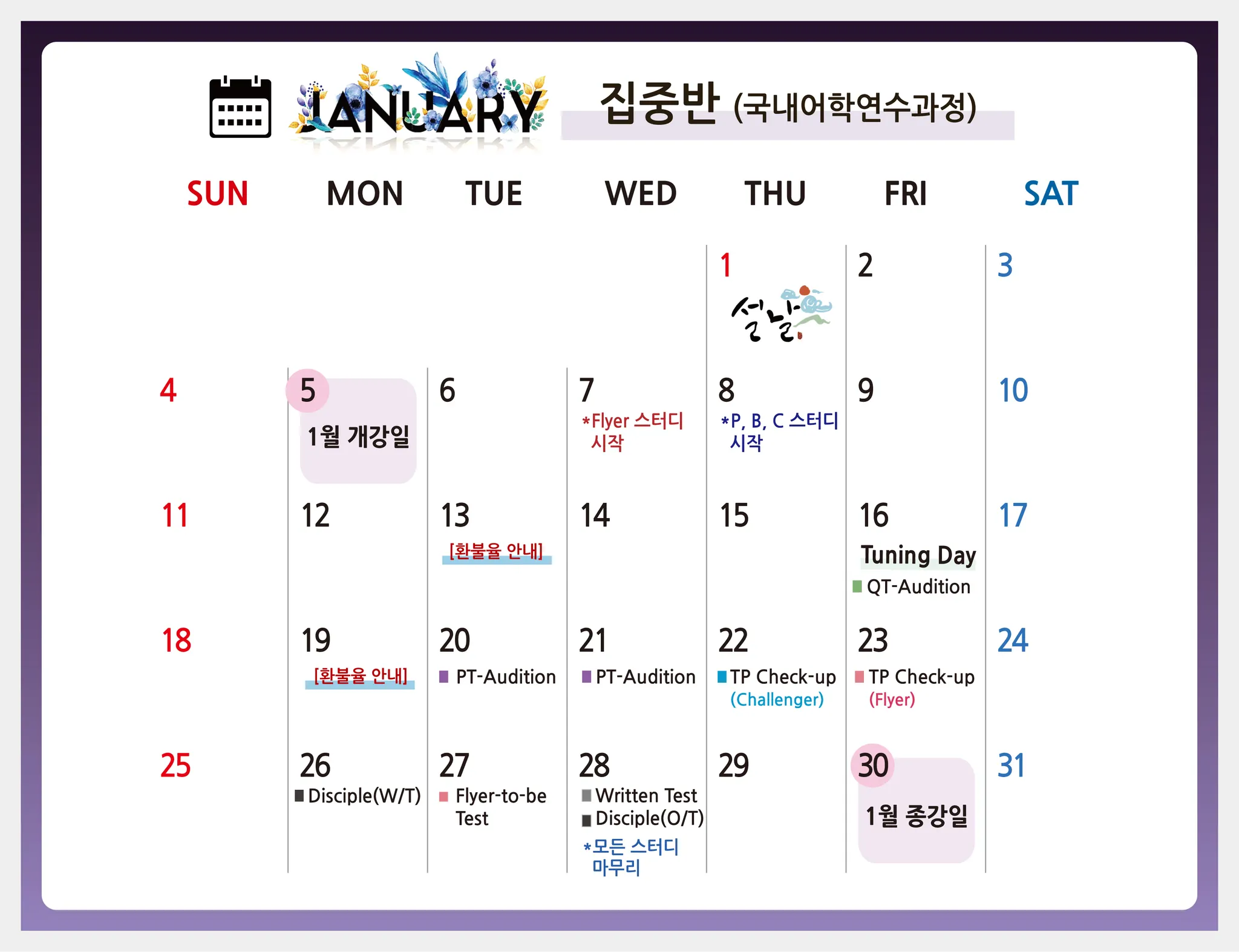 ( 그 외 출결 관리와 각종 테스트 참여는 현장반과 동일하게 관리 항목에 포함됩니다.)