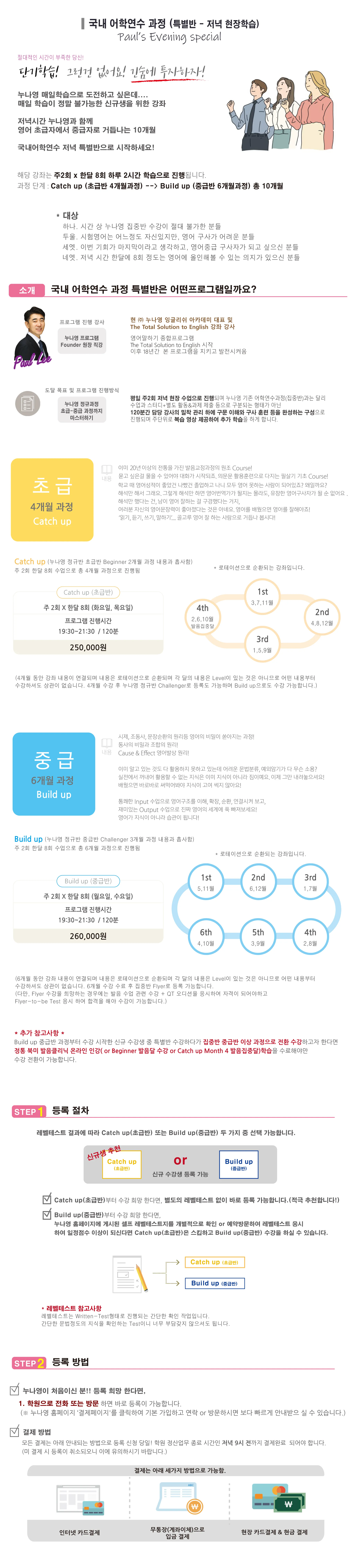 새로 선보이는 Paul's Evening Special 특별반은 시간적으로 매일 학습이 절대불가한 분들을 위해
