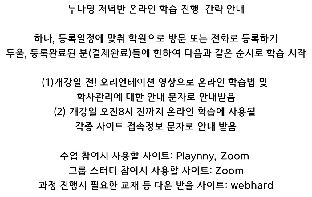 Q: 누나영 저녁반 온라인 학습은 어떻게 진행되나요?